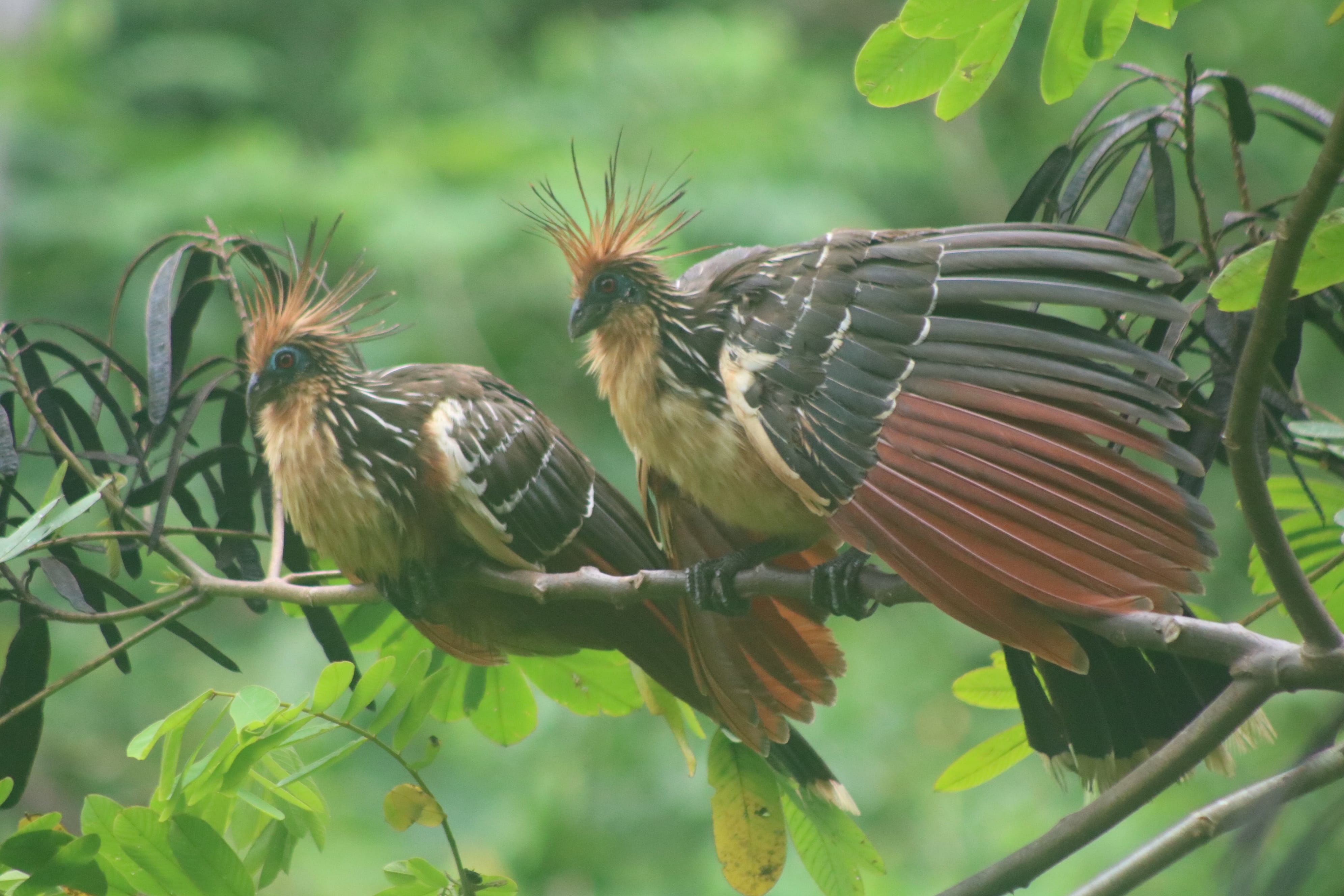 Hacemos frecuentes paradas espontáneas, tal vez para ver un quetzal de plumas brillantes, un trogón o un guán salvaje parecido a un pavo. Llegamos al cómodo Cock-of-the-Rock Lodge. (Comida para llevar, D)