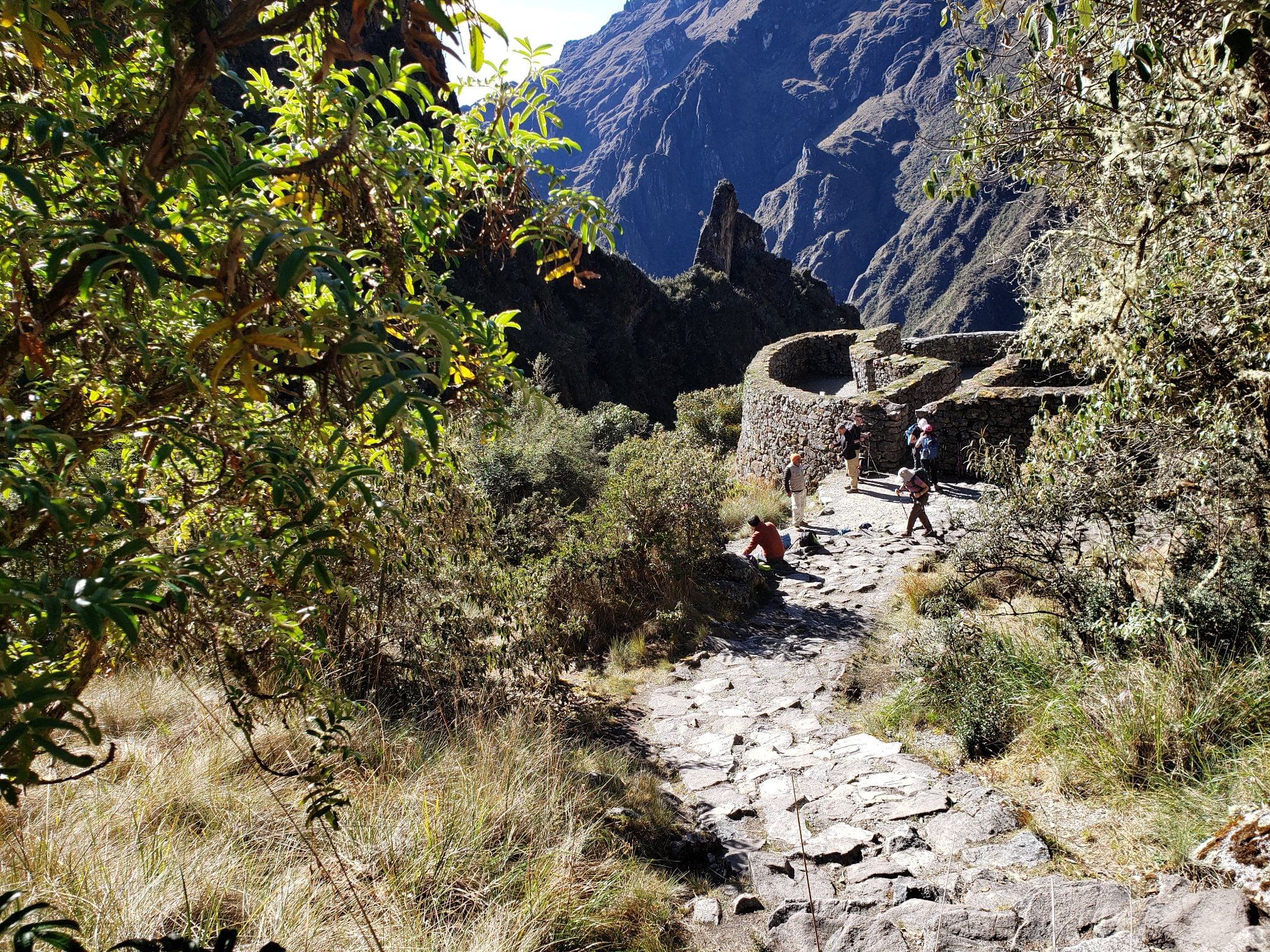 A partir de aquí, descenderemos durante aproximadamente 2 horas y media hasta llegar a nuestro último campamento, Wiñay Wayna, ubicado a 2650 m.s.n.m. (8,694 pies). Este tramo nos llevará a través de hermosos paisajes mientras nos acercamos cada vez más a Machu Picchu.
