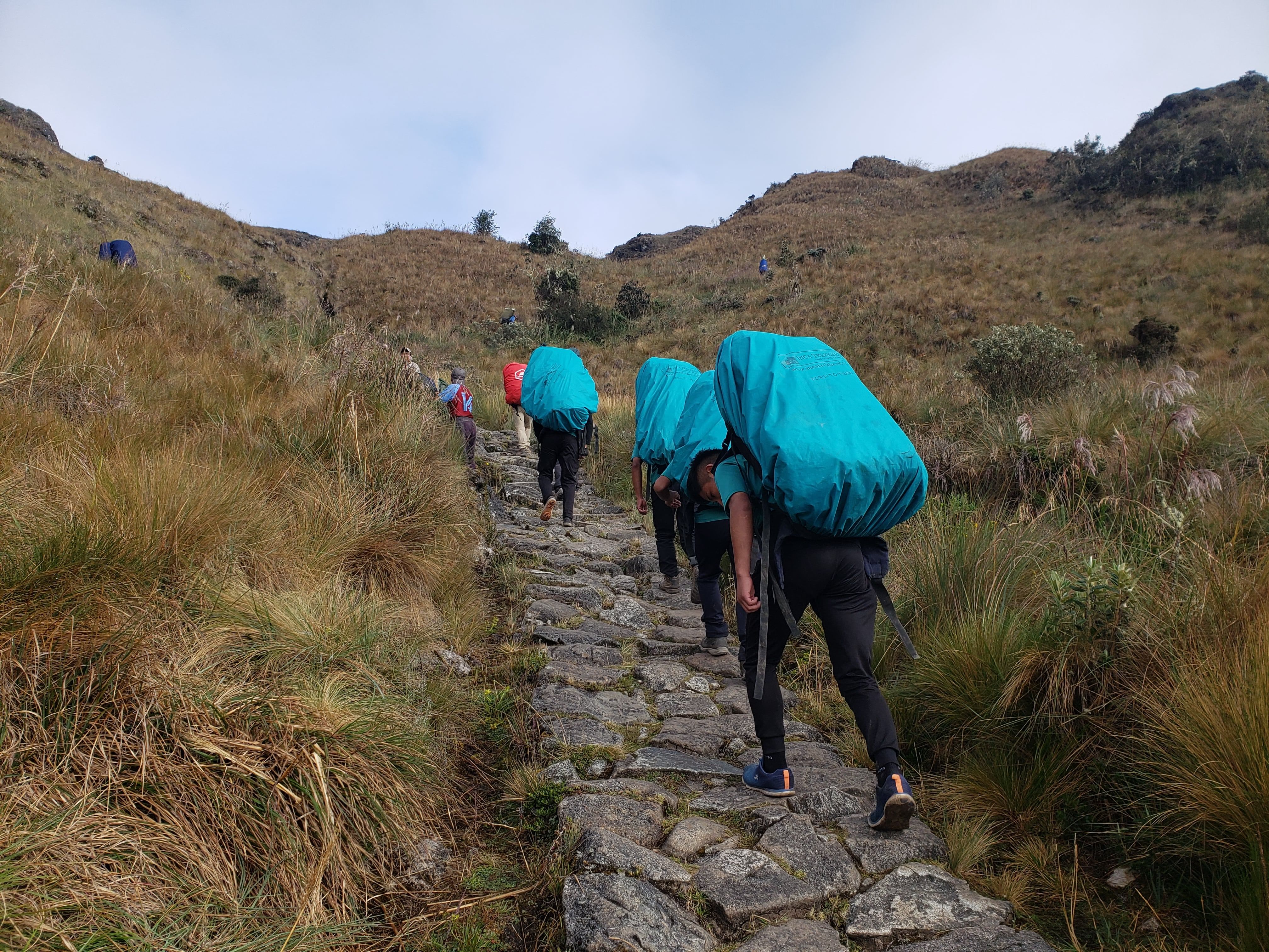 Después de un desayuno energético, comenzaremos a subir durante aproximadamente 1 hora hasta Tres Piedras (Las Tres Piedras). Un poco más adelante nos adentraremos en el hermoso bosque nuboso. Después de haber caminado alrededor de 2 horas a través de una vegetación espectacular, llegaremos a las líneas de árboles y a Llulluchapampa a 3800 m/12,467 pies. Aquí nos detendremos para tomar un breve descanso con un té o café y unos sándwiches para reponer fuerzas. Los necesitará durante la próxima hora y media de caminata que nos llevará al punto más alto del Camino Inca: Abra Warmihuñusca o paso de la mujer muerta (4215 m/13.828). La flora predominante de esta parte del sendero es la vasta tierra cubierta de hierba que cruzarás al acercarte al paso. Una vez que hayamos llegado a la cima del paso, celebraremos todos juntos por haber completado la parte más difícil del Camino Inca. Las siguientes 2 horas de descenso nos llevarán al campamento base en Pacaymayo (3600 m/11,811 pies), donde pasaremos la segunda noche.