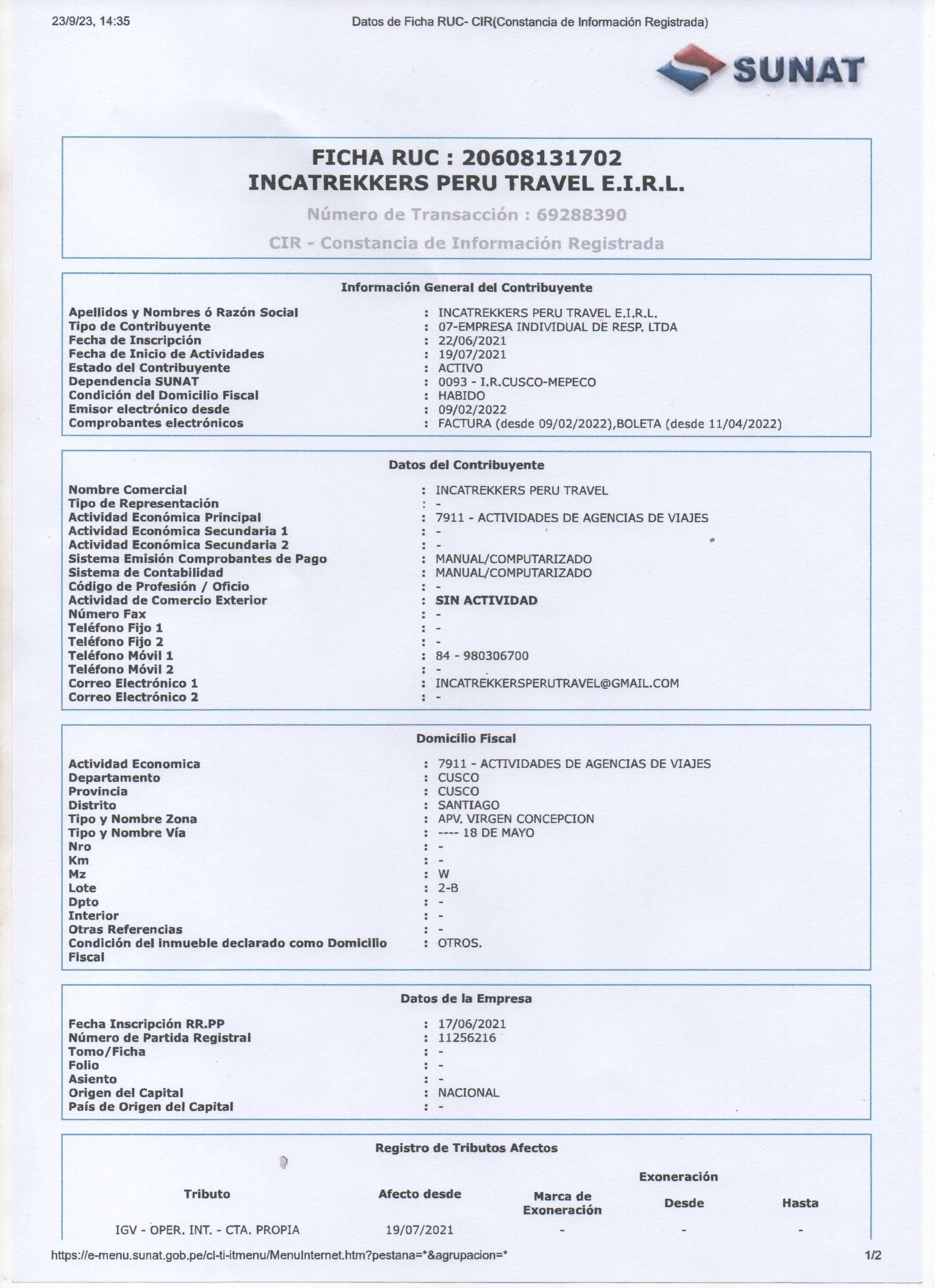 Yes, we are a licensed Inca Trail operator, and we're delighted to share the official licenses that testify to our legitimacy.