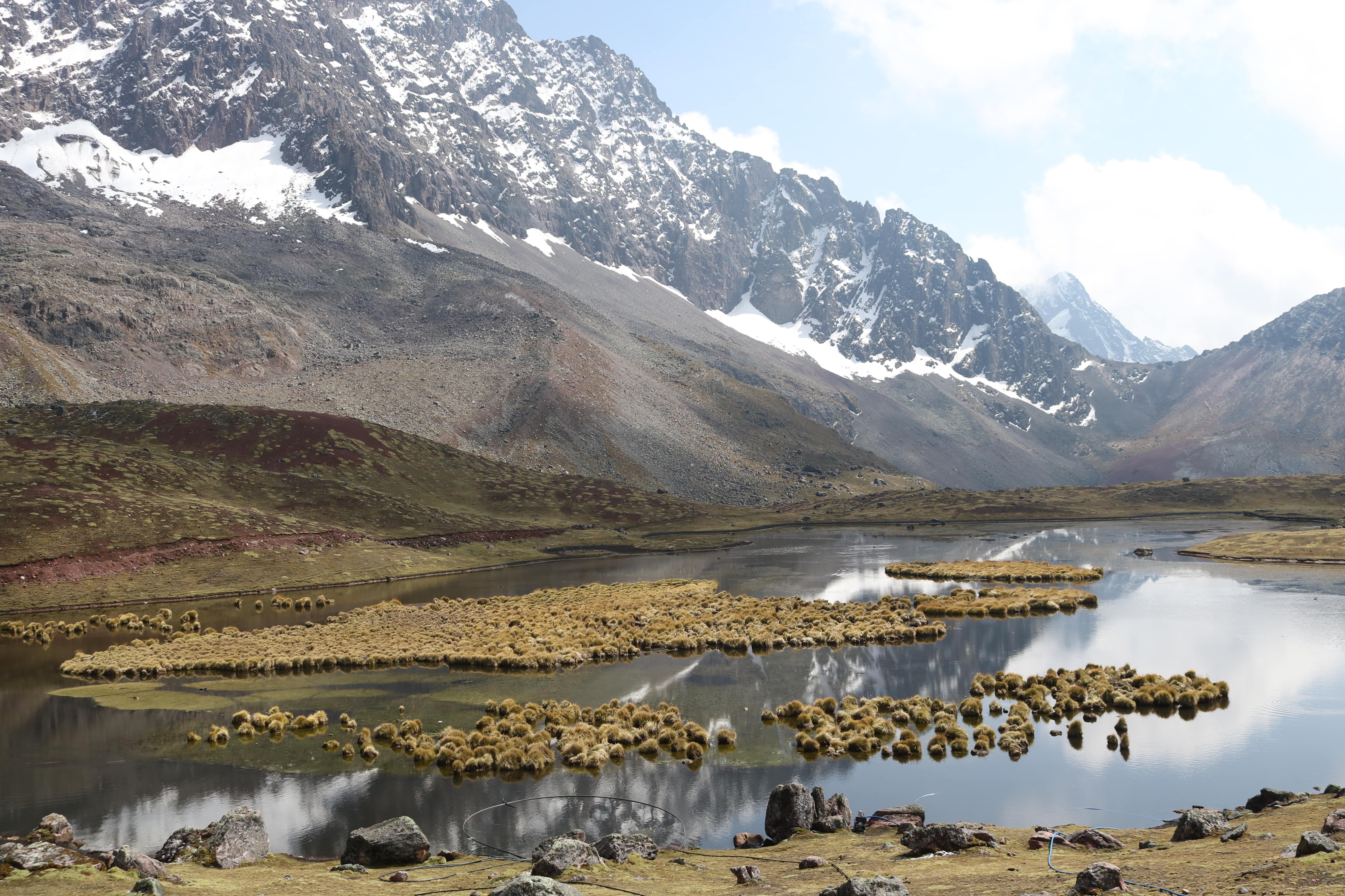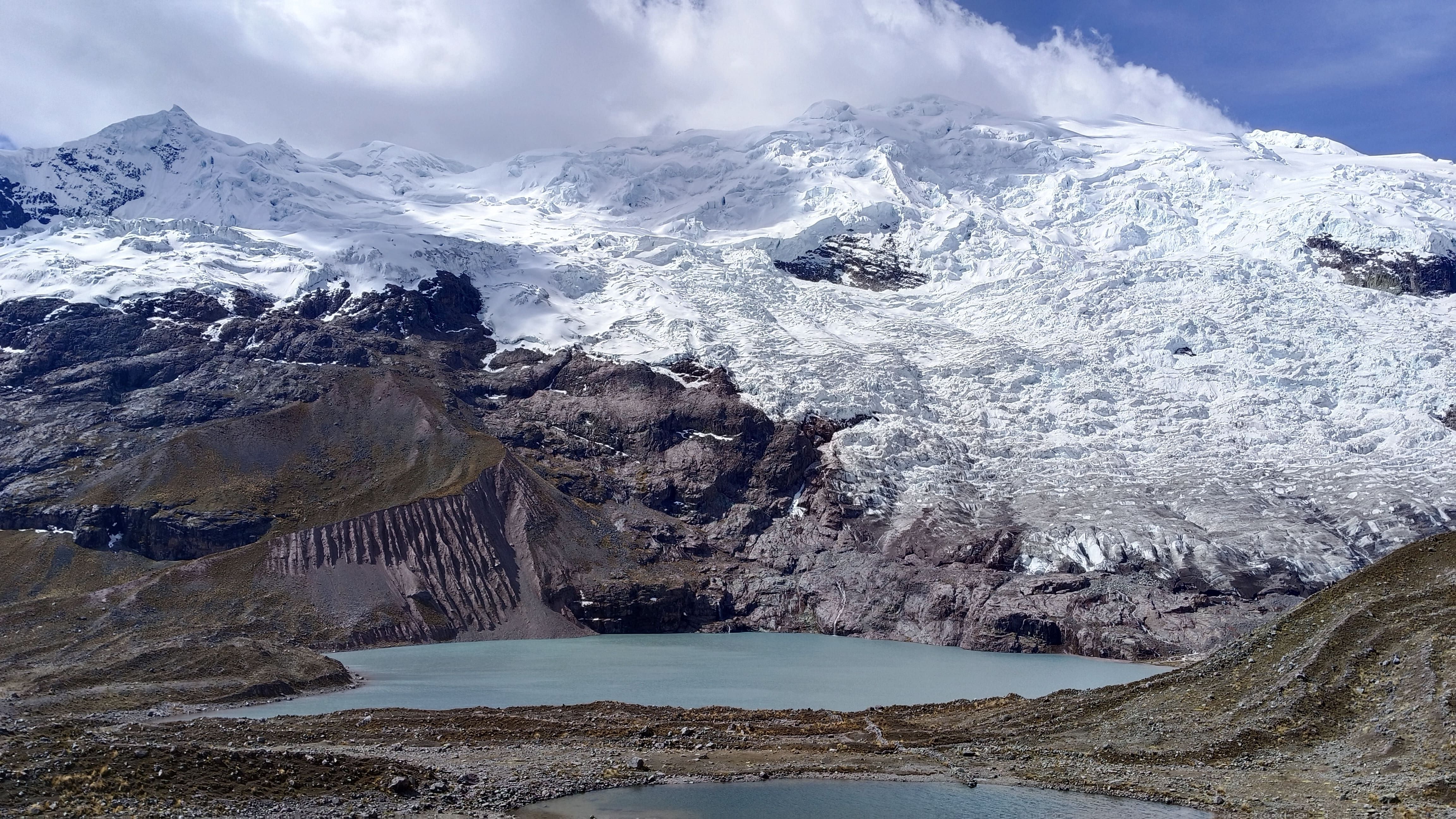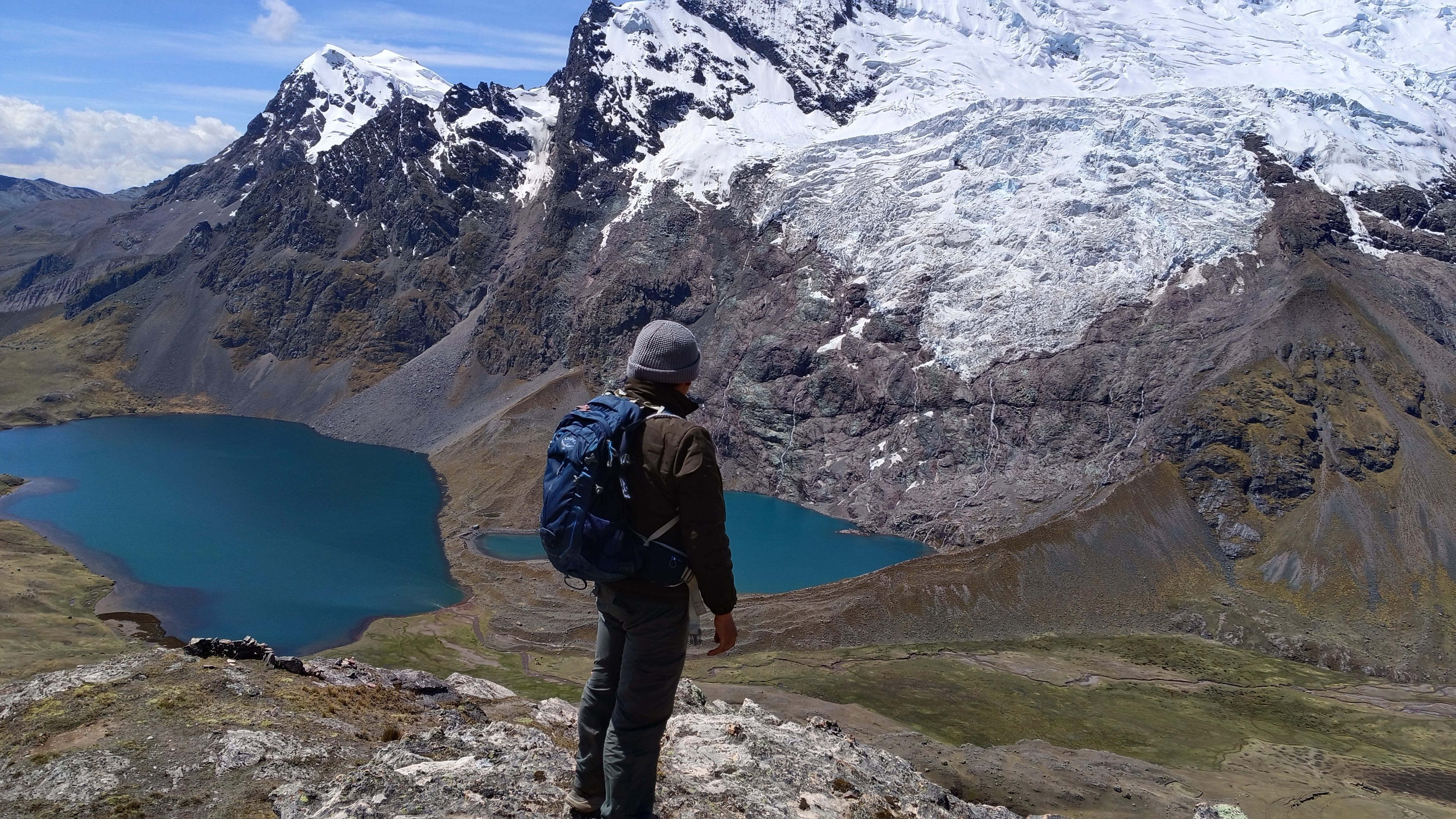We will pick you up from your hotel early in the morning at 5:00 a.m. on our private transportation. We take a 3-hour drive through the beautiful countryside to the small Andean communities of Upis (4400 m/14,435 ft), the starting point of our trek. In Upis, we will meet the local horsemen who will accompany us on our Ausangate and Rainbow Mountain treks. and start our hike with a climb to Arapa Pass, at 4800m (15,748 ft). The ascent will take approximately 3 hours. Along the way, we will have panoramic views of different colored lakes, the majestic Ausangate Glacier, and spectacular views of the surrounding snow peaks. After taking some great photos, we will descend for another 3 hours until we get our lunch spot, then it will take us two more hours to our first camp at Puka Cocha (4600 m/15,091 ft), which is one of the most beautiful campsites close to the Ausangate glacier and at the bank of the lake.